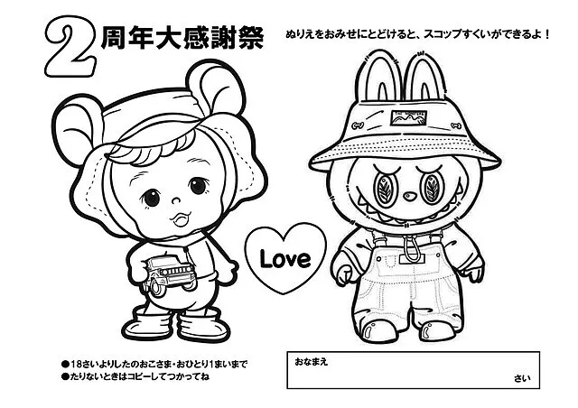 ぬり絵をご持参でお菓子&おもちゃのスコップすくい