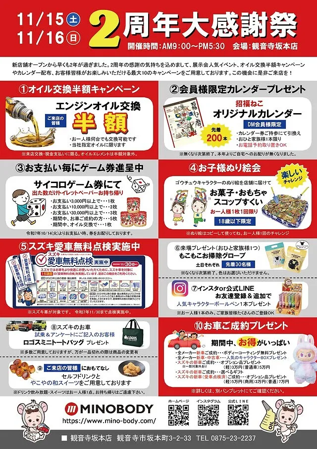 ※現金支払いに限る。スタンプ押印対象外。指定オイルのみ。預かり納車は対象外。